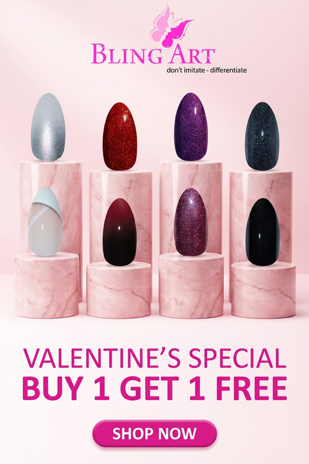 Bling Art Squoval nails are designed to deliver the perfect balance between the strength of square nails and the softness of rounded edges. This signature shape creates a clean, modern silhouette that complements both everyday styling and statement looks.